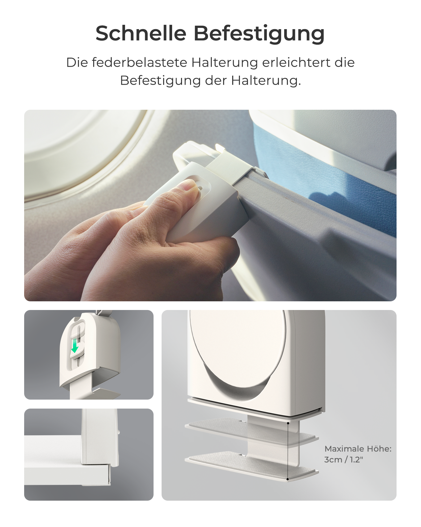 - Schnelle Befestigung dank federbelastetem Montagebügel
