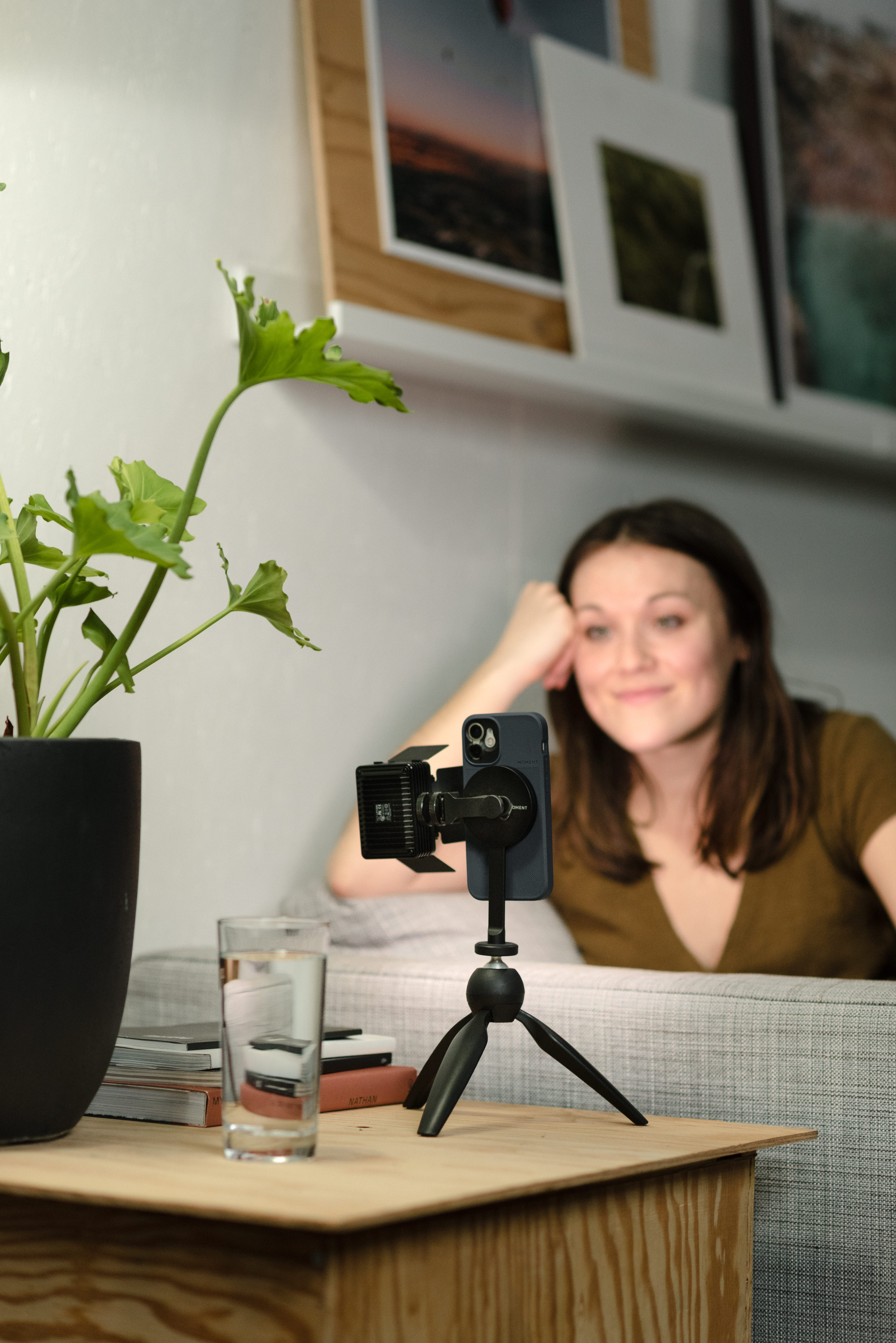 Der Pro Tripod Mount for MagSafe – Landscape & Portrait ermöglicht eine stabile und zuverlässige Lösung für eine mühelose Foto- und Videoaufnahmen mit dem Smartphone. Mit seiner Kompatibilität zu 1/4-Zoll-20-Stativen und der Möglichkeit, das MagSafe-fähige iPhone im Hoch- und Querformat zu befestigen, begeistert diese Halterung mit professionellen Aufnahmen. Die leichte Aluminiumkonstruktion lässt sich dabei bequem transportieren, während die abnehmbare Kaltschuhalterung das Anbringen von externen Zubehör, wie Mikrofon und Beleuchtung, erleichtert.