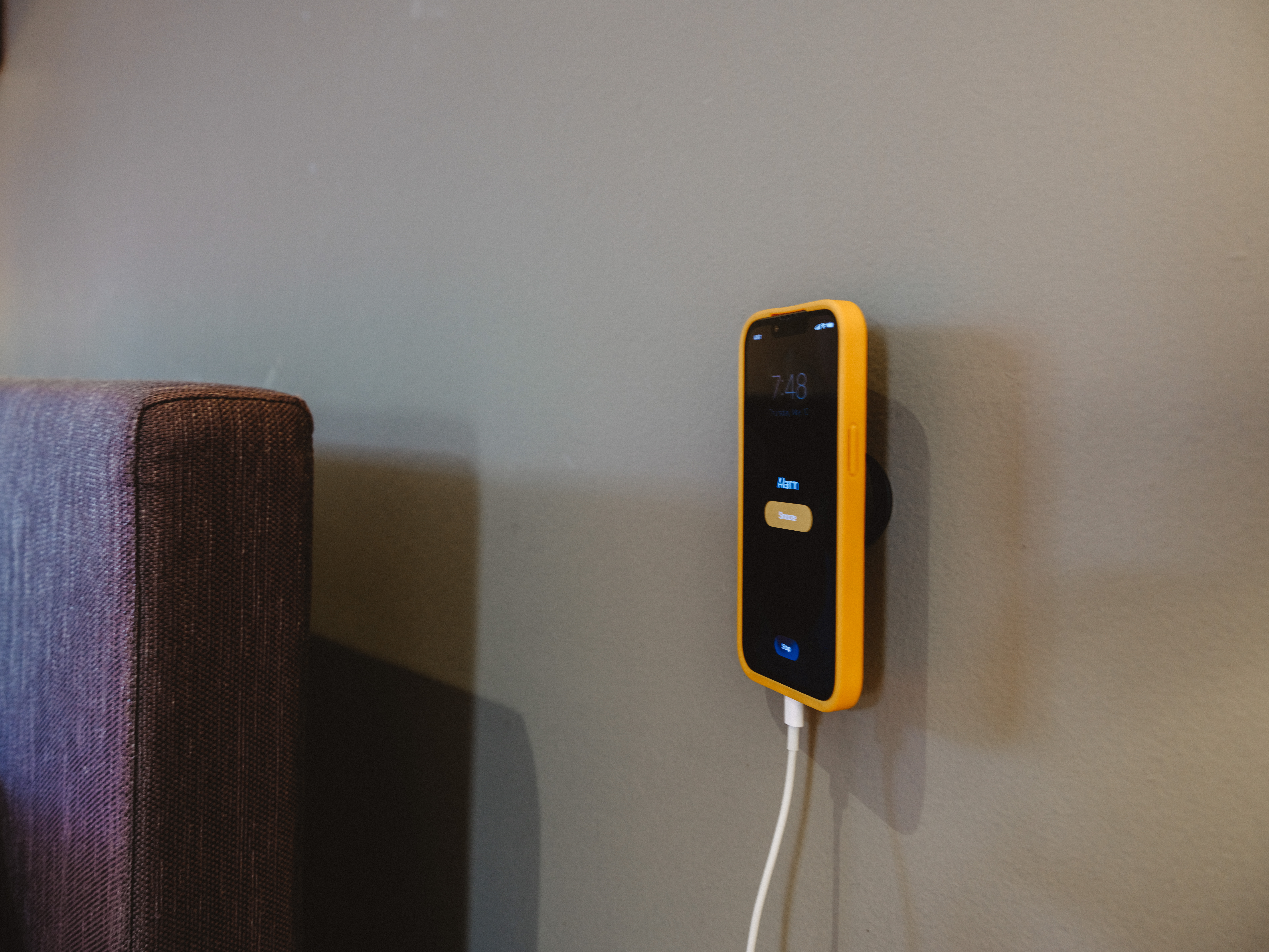 • MagSafe-Wandhalterung ermöglicht das Anbringen des Smartphones an ebenen Flächen