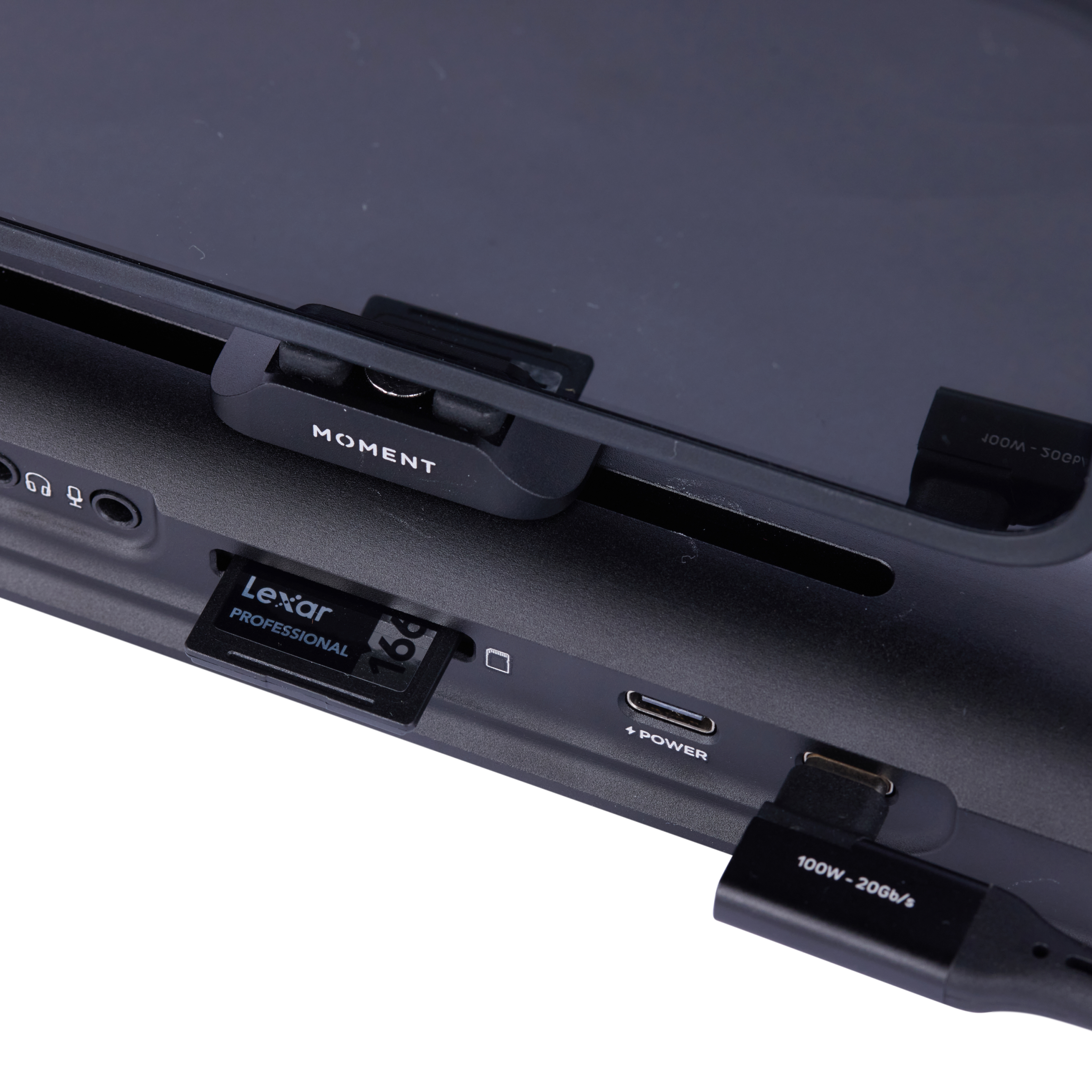 Mit dem SuperCage erweitert Moment den mobilen Kameraeinsatz um eine stabile, funktionsreiche Plattform, die den Übergang vom spontanen Shot zu strukturierten Produktionsabläufen unterstützt. Im Zentrum steht das integrierte USB-C-Hub mit drei USB-C-Ports (jeweils bis zu 100 Watt und 10 Gbit/s), einem HDMI-Ausgang für 4K bei 60 Hertz, zwei 3,5-Millimeter-Klinkenanschlüssen und einem UHS-II-SD-Kartenslot mit bis zu 250 Mbit/s. Die modulare Konstruktion bietet mit NATO-Schienen an Ober- und Seitenflächen, vier Kaltschuhhalterungen sowie 43 Befestigungspunkten (1/4 Zoll-20 und 3/8 Zoll-16) flexible Optionen für Licht, Ton oder zusätzliche Griffe, während die ARCA-kompatible Unterseite den schnellen Wechsel auf ein Stativ ermöglicht. Kabelführungsschlitze und gummierte Kontaktpunkte sorgen für eine aufgeräumte Rig-Struktur – besonders bei dynamischen Drehs. Als ergänzendes Zubehör sind die kompakten SuperFlex Cables in 10 Zentimetern und 23 Zentimetern erhältlich, die sich durch ihre stabile Bauweise für präzise geführte USB-C-Verbindungen im Rig eignen.