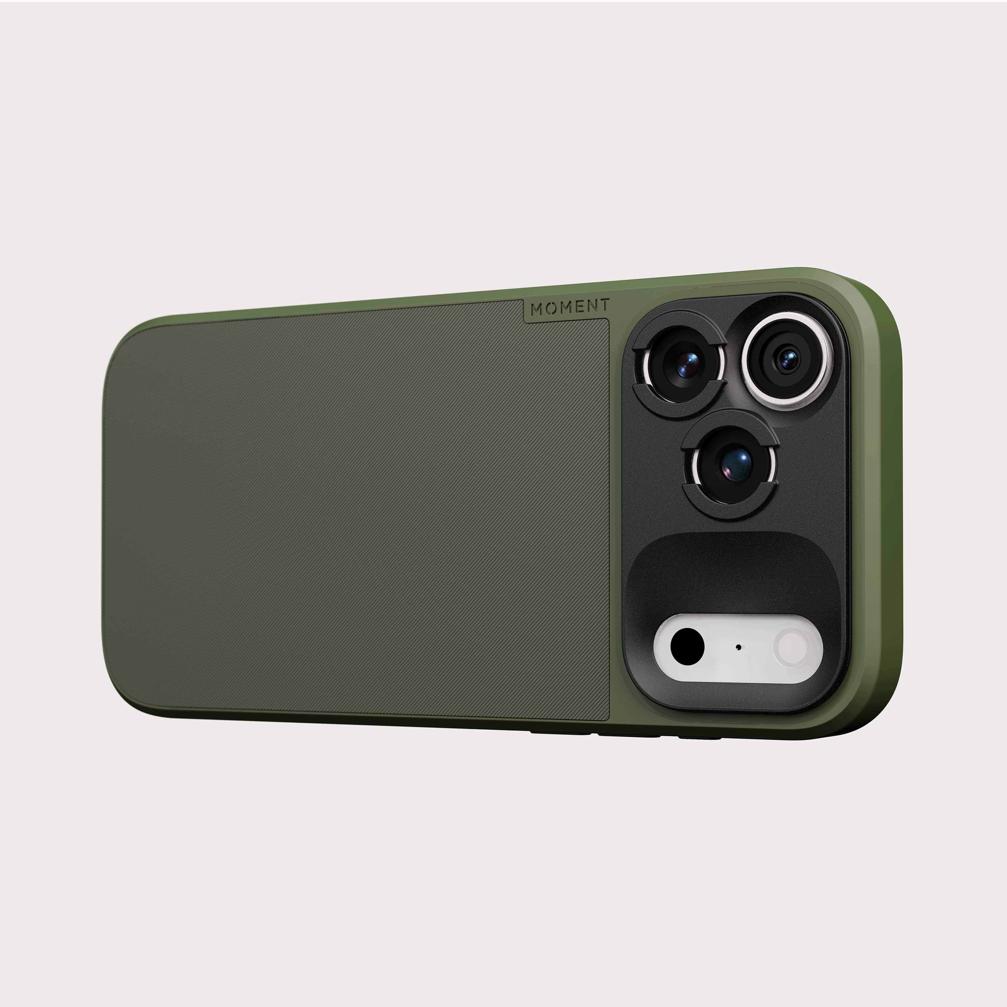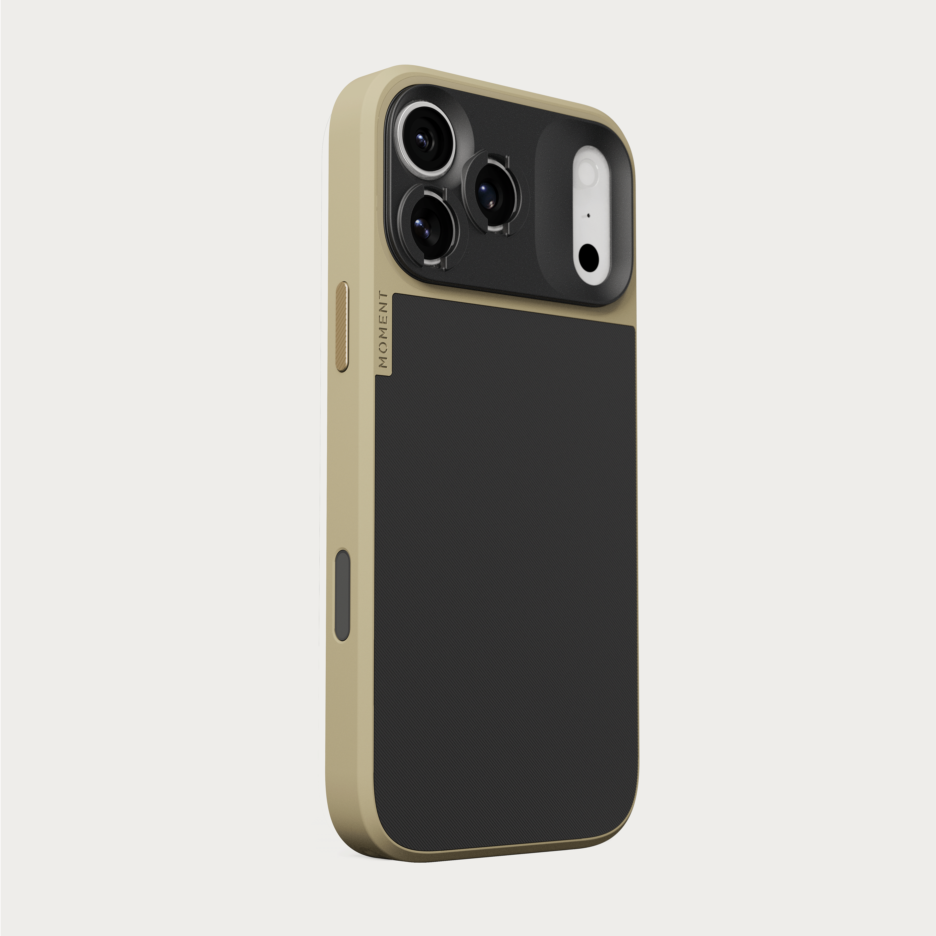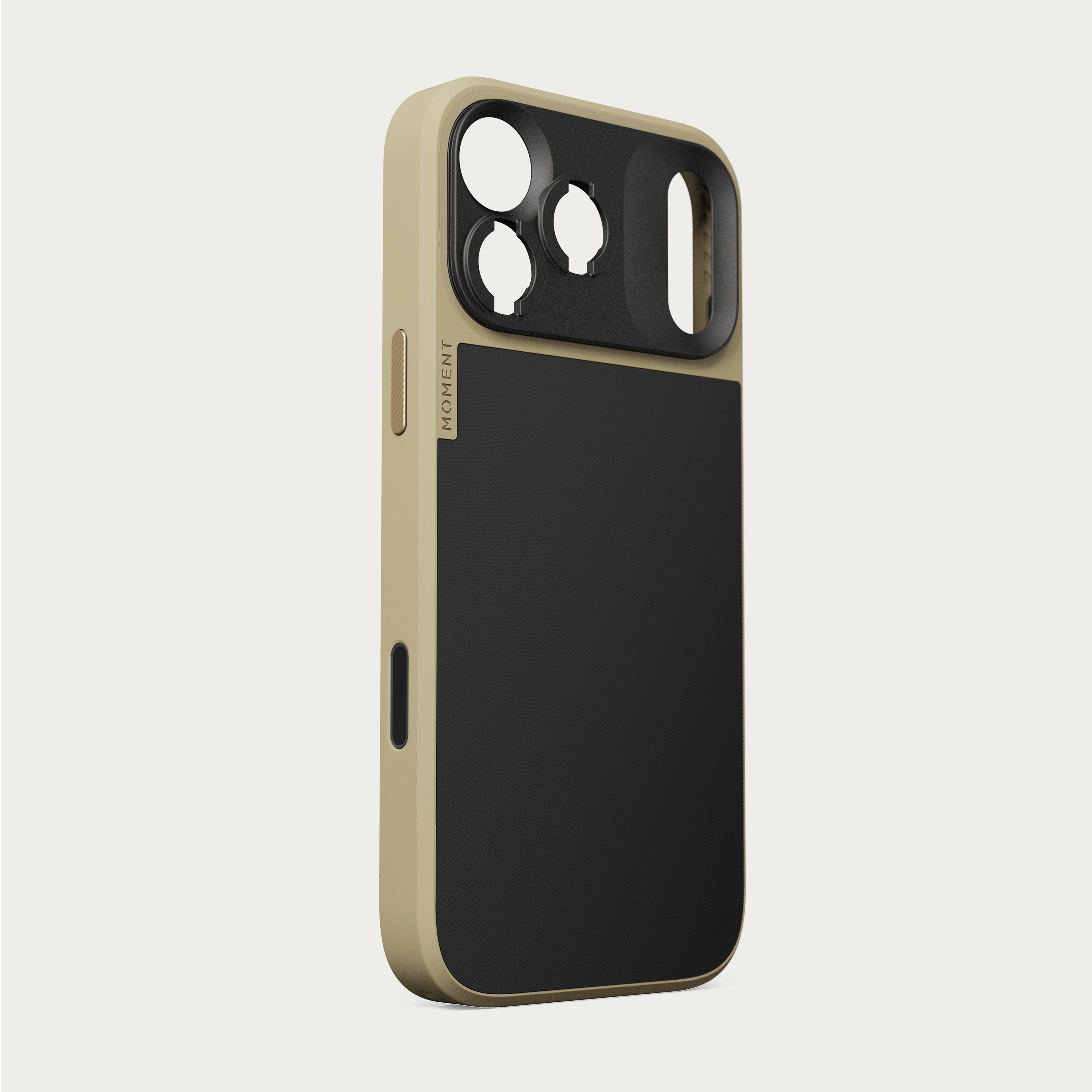 Das Moment Case für die iPhone 17 Reihe kombiniert einen stabilen TPU-Rahmen mit AirFlex-Seitenwänden, die Aufprallkräfte über integrierte Luftkanäle ableiten und so Stürze aus bis zu drei Metern Höhe abfangen. Eine verstärkte Rückplatte aus Polycarbonat erhöht die strukturelle Stabilität, während eine Innenauskleidung aus Mikrofaser das Gerät vor Kratzern schützt. Die geriffelte TPU-Oberfläche sorgt für eine verbesserte Griffigkeit und minimiert das Risiko, dass Staub oder Textilfasern zwischen Case und Gerät gelangen. Der Camera-Control-Button bleibt vollständig unterstützt und bietet ein präzises, direktes Tastengefühl. Durch die Kombination aus Schutz, modularer Erweiterbarkeit und umfassender Kompatibilität ist das Moment Camera Case eine vielseitige Lösung für kreative Einsätze unterwegs.