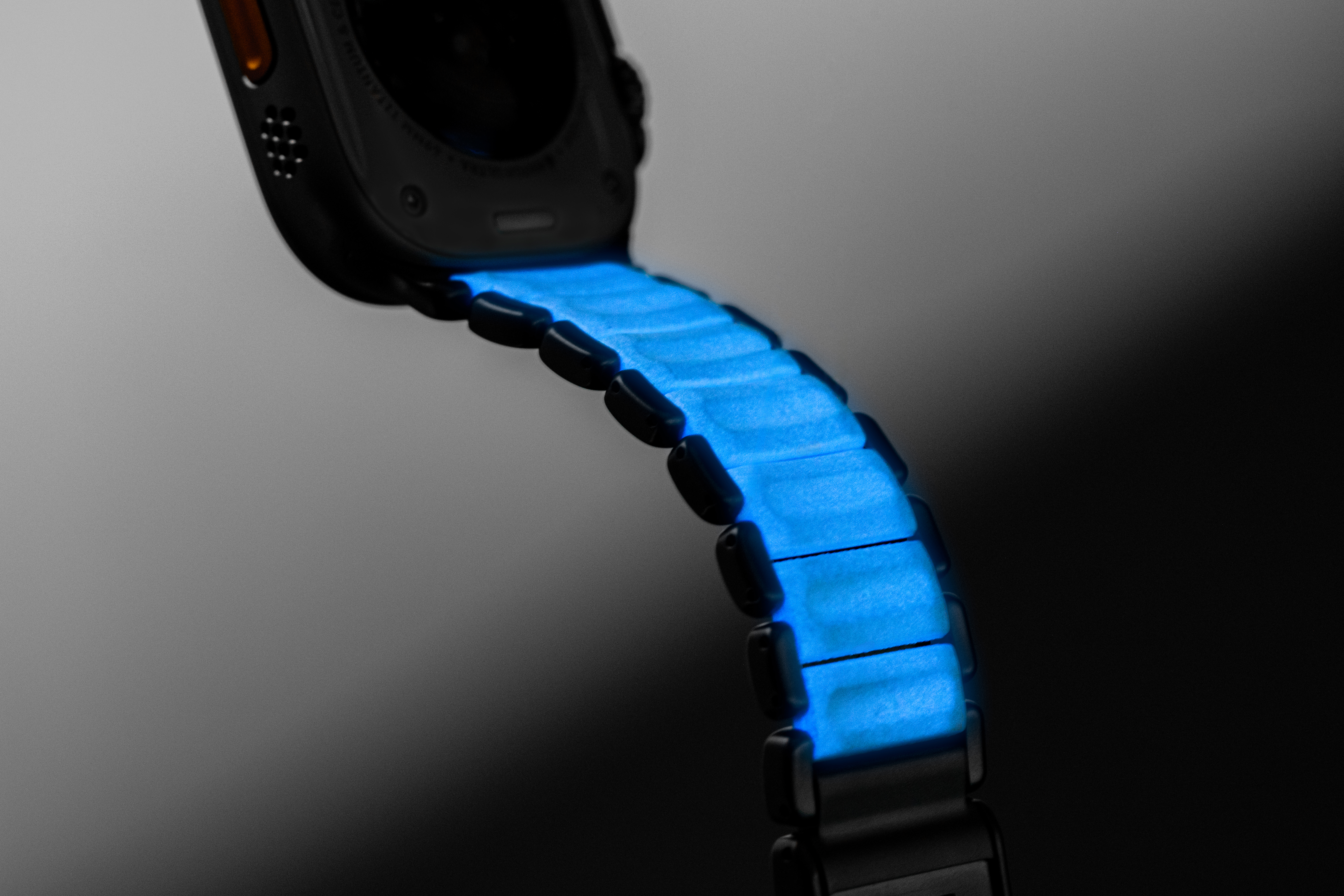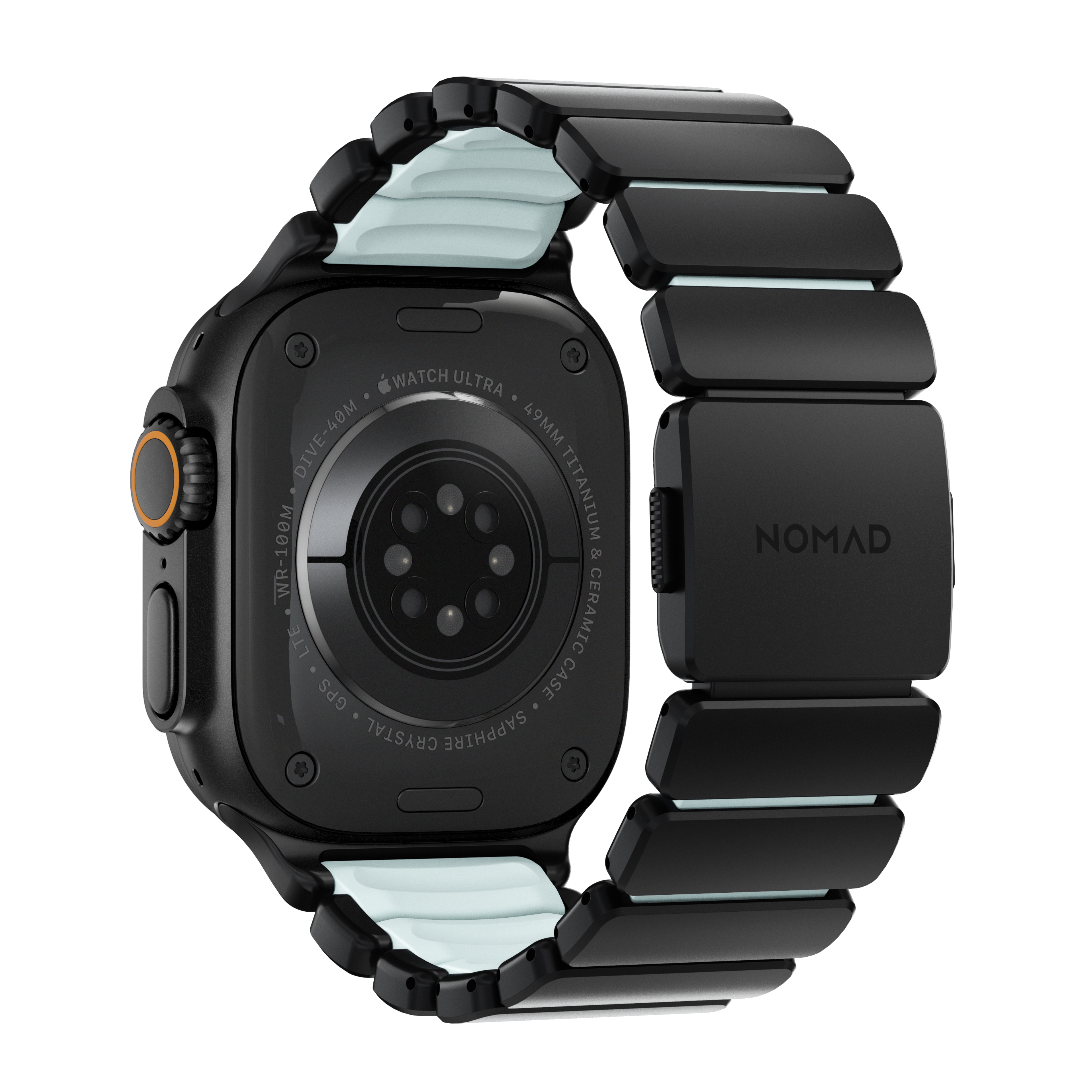 Nomad Stratos Band Titanium Black 49mm Icy Blue Glow
