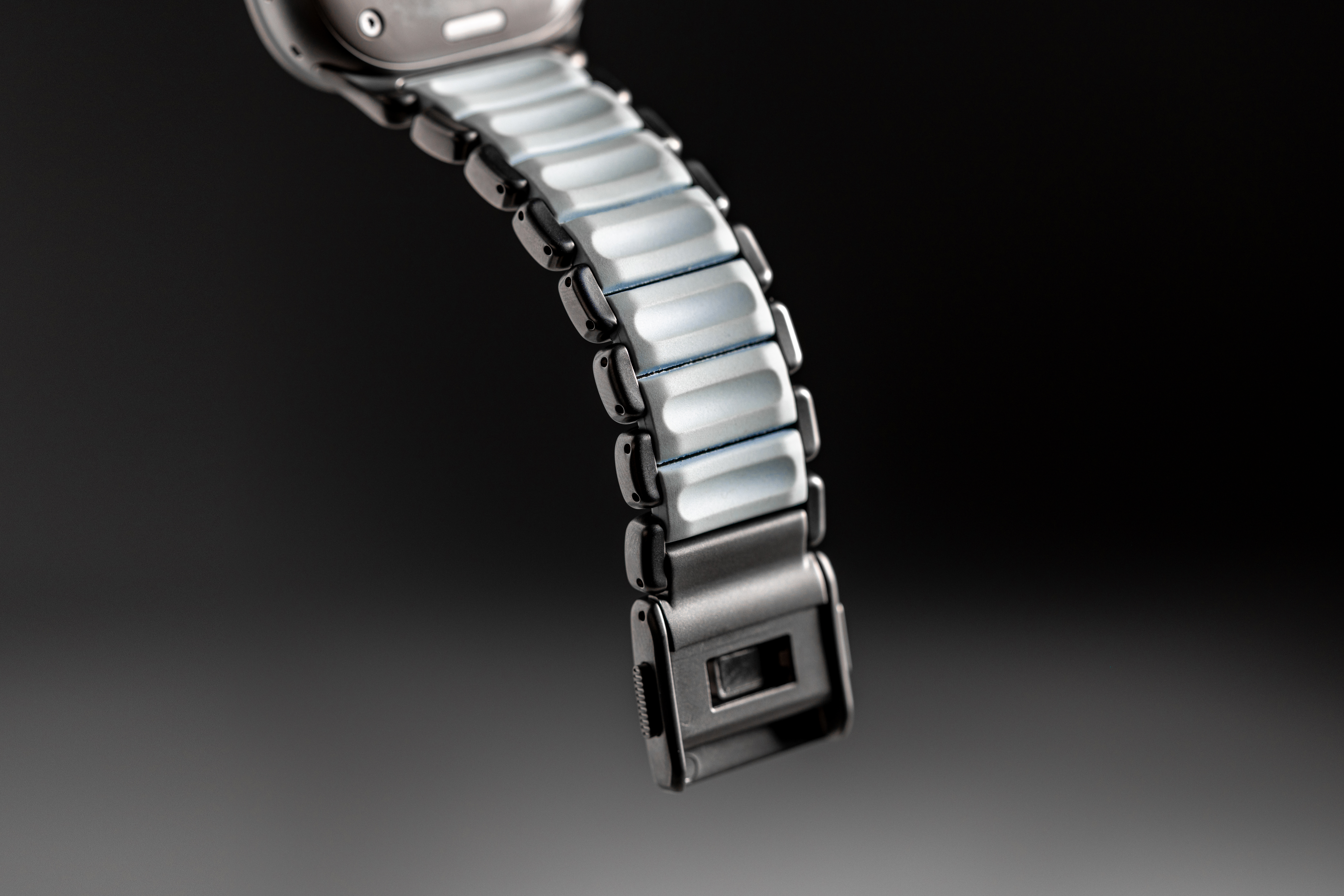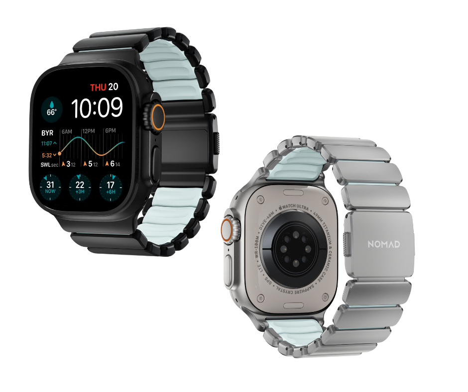 Bamberg, 09. März 2026 –  Mit der Icy Blue Glow Edition ergänzt Nomad die Stratos-Band-Serie um eine zusätzliche Designvariante mit photolumineszierendem Materialeinsatz. Das Hybrid-Armband kombiniert außenliegende Verbindungen aus Grad-4-Titan mit flexiblen FKM-Elementen, die bei Tageslicht in einer zurückhaltenden Blau-Weiß-Farbgebung erscheinen und bei Dunkelheit ein dezentes bläuliches Leuchten entwickeln. Offene Bereiche zwischen den Titanverbindungen lassen das Icy-Blue-FKM sichtbar hervortreten und unterstreichen den charakteristischen Hybrid-Look der Serie. Konstruktion, Passform und Funktionalität der Stratos-Reihe bleiben unverändert erhalten. Die Nomad Icy Blue Glow Stratos Edition ist ab sofort bei Amazon erhältlich.