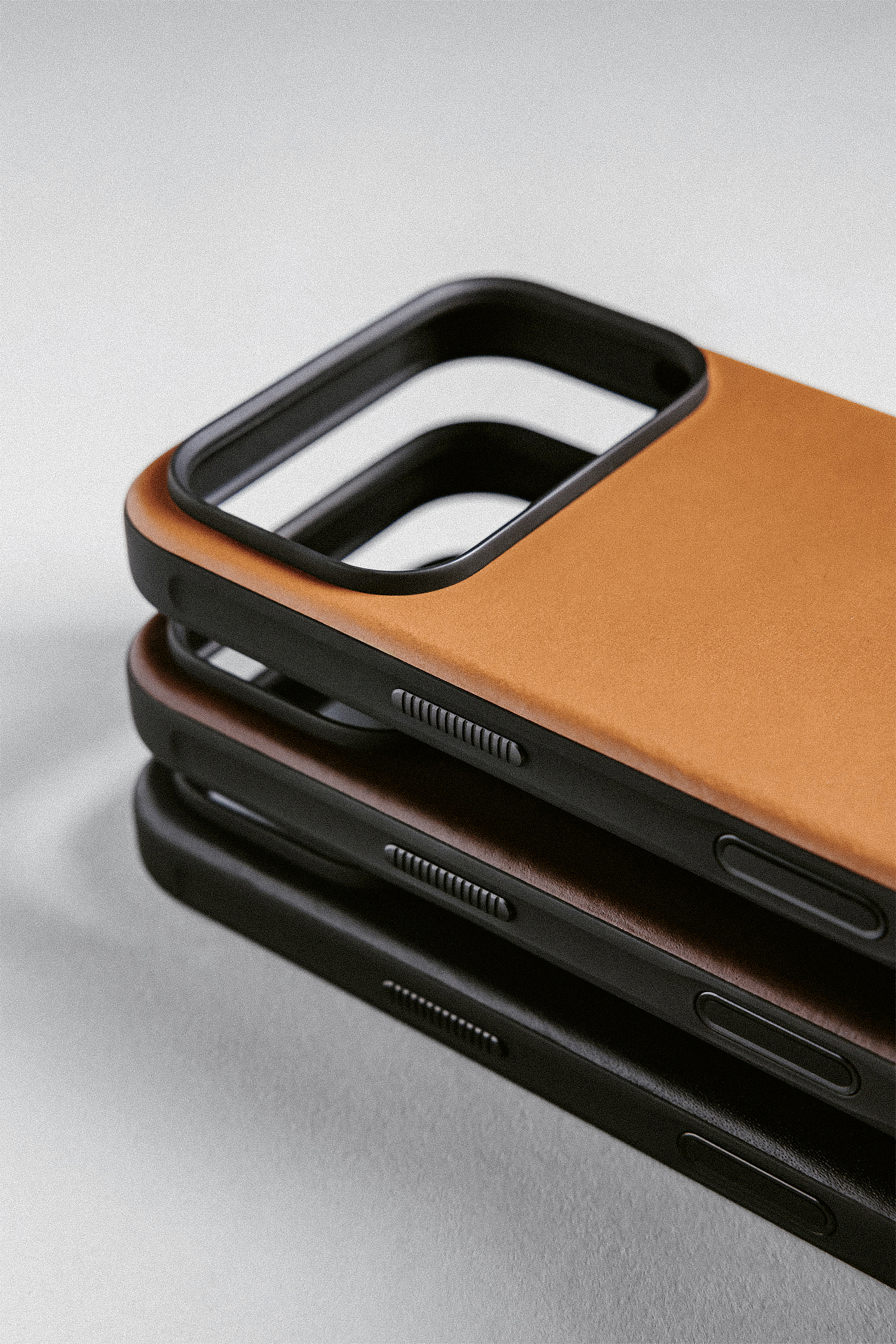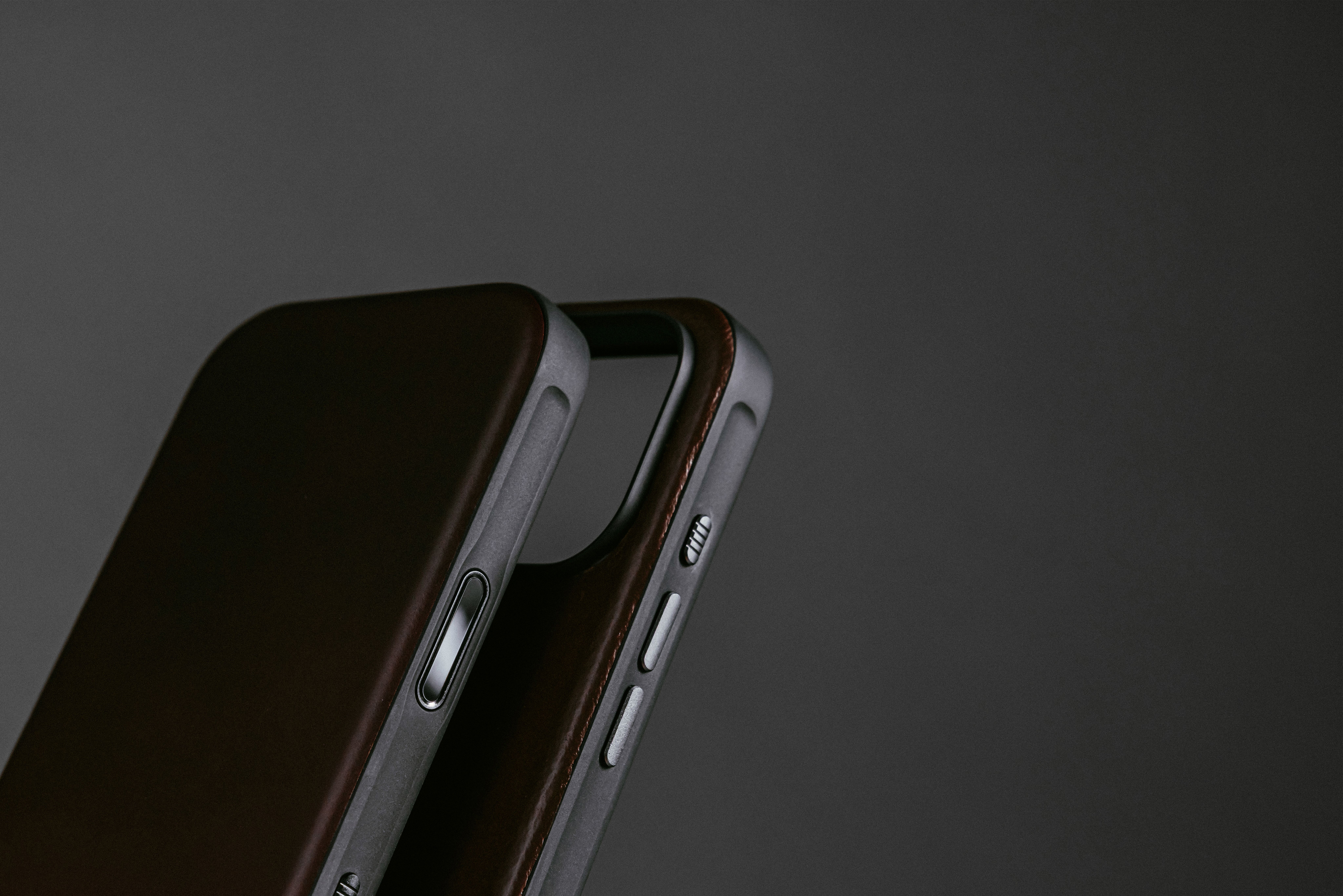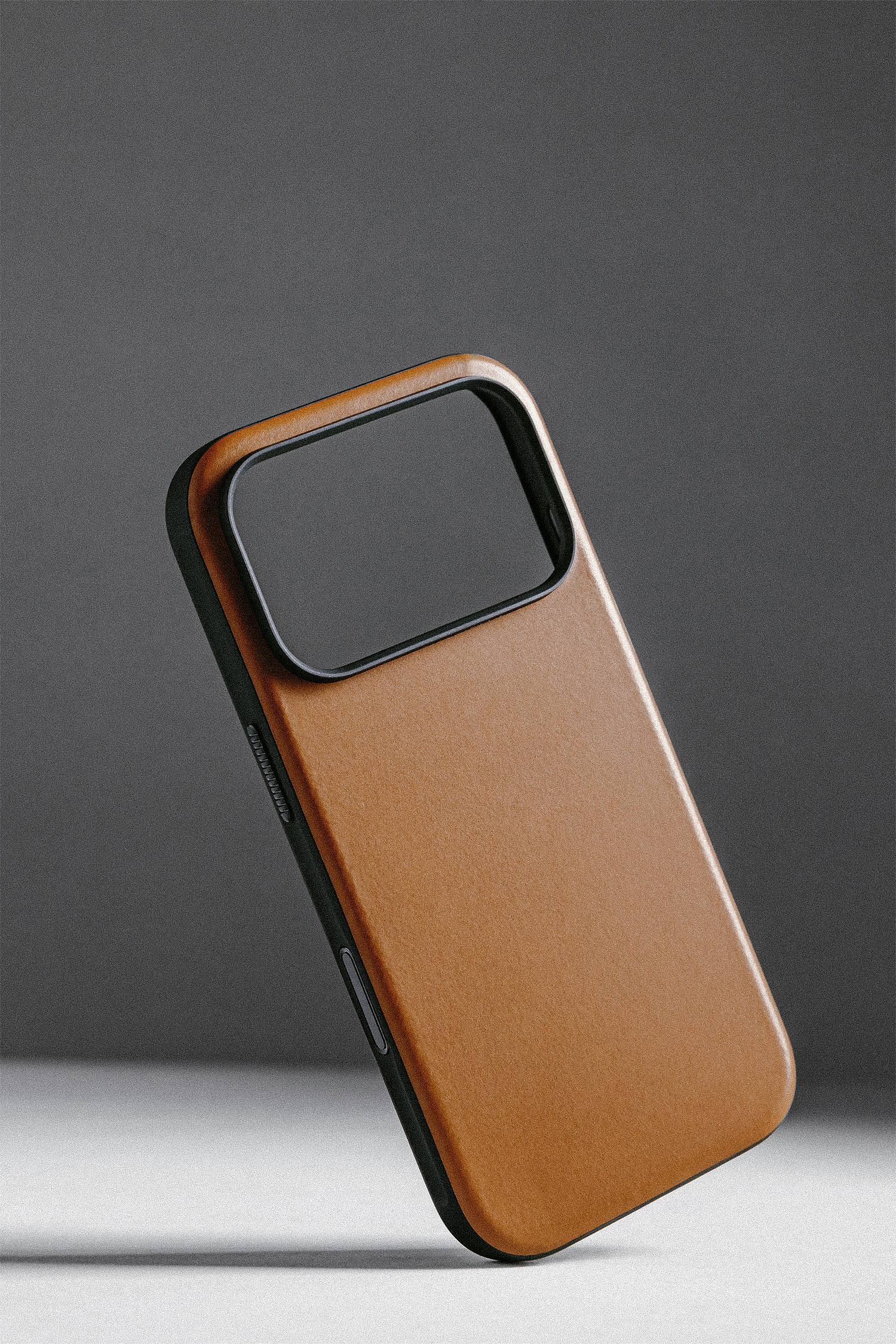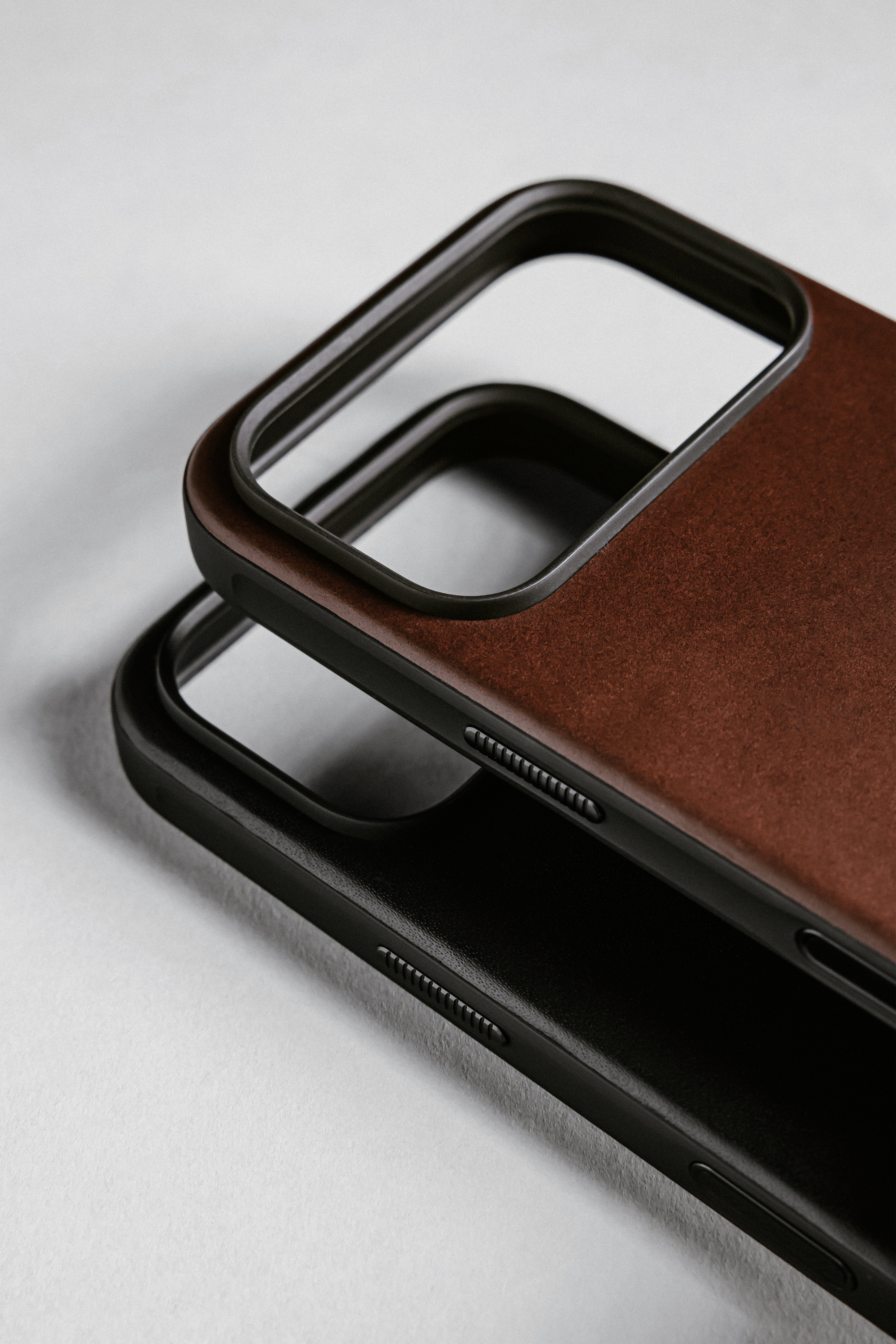 Das Modern Leather Case und das Modern Leather Folio verbinden robusten Schutz mit hochwertiger Lederverarbeitung – erhältlich sowohl in klassischem Horween-Leder als auch in Nomads eigenem glatten Echtleder. Während das Modern Leather Case durch seine schlanke, stoßdämpfende Konstruktion überzeugt und dank starker Neodym-Magnete sicheren Halt sowie volle MagSafe-Kompatibilität bietet, ergänzt das Modern Leather Folio die Kollektion um praktische Funktionalität: Neben umfassendem Schutz verfügt es über ein integriertes Kartenfach für drei Karten und Bargeld sowie einen abnehmbaren Magnetverschluss für flexible Nutzung. Beide Modelle entwickeln mit der Zeit eine charaktervolle Patina und verbinden so elegantes Design mit Alltagstauglichkeit.
