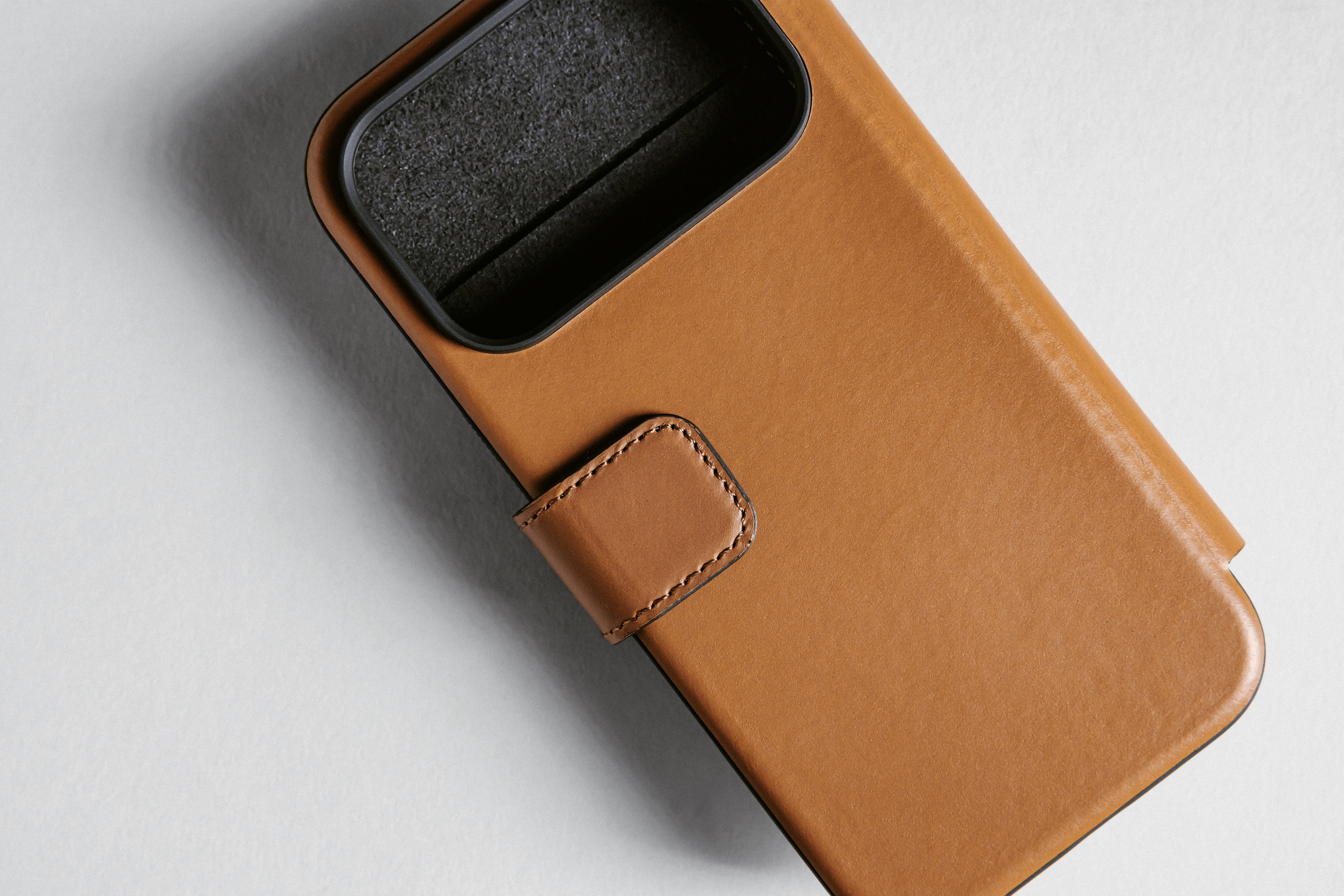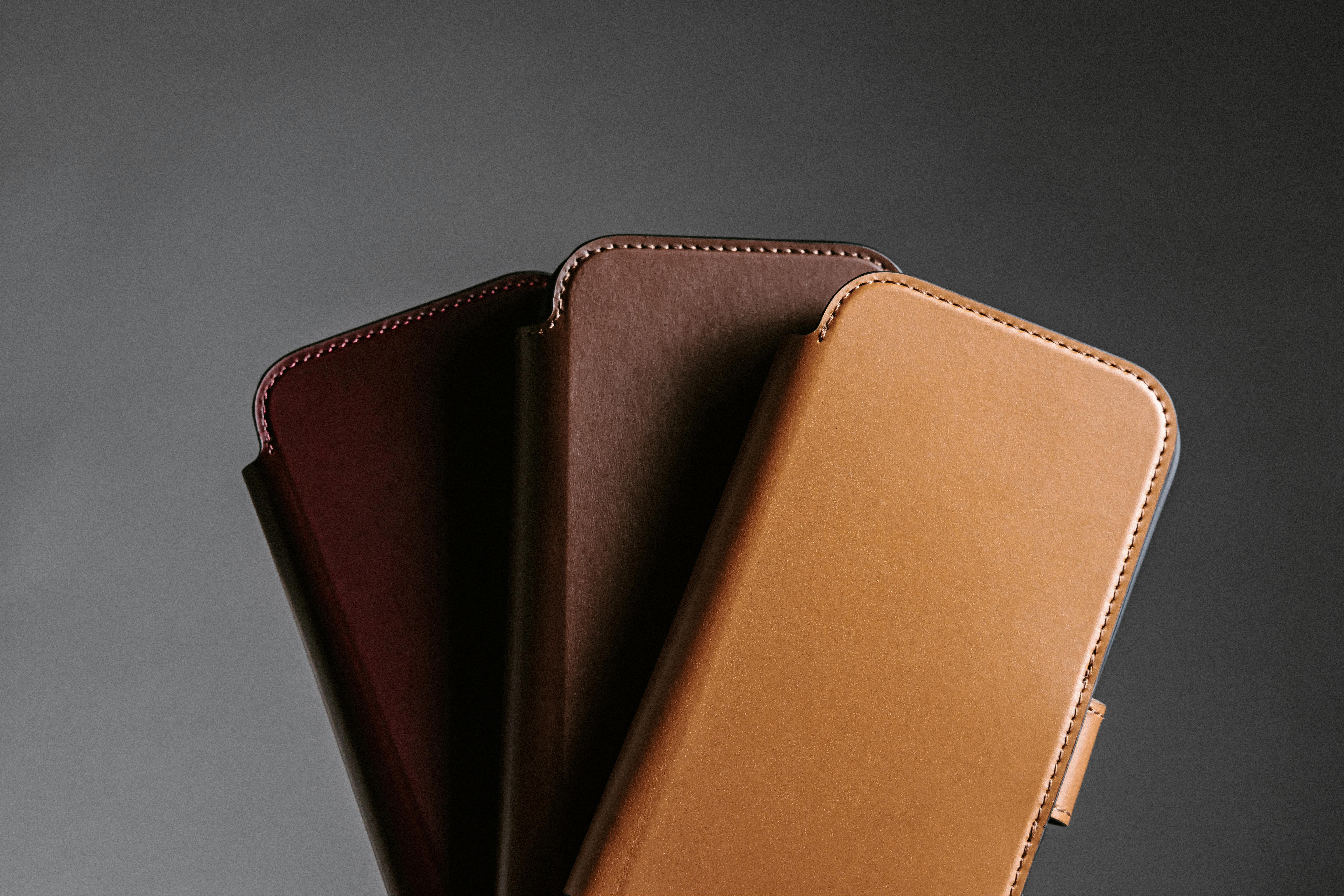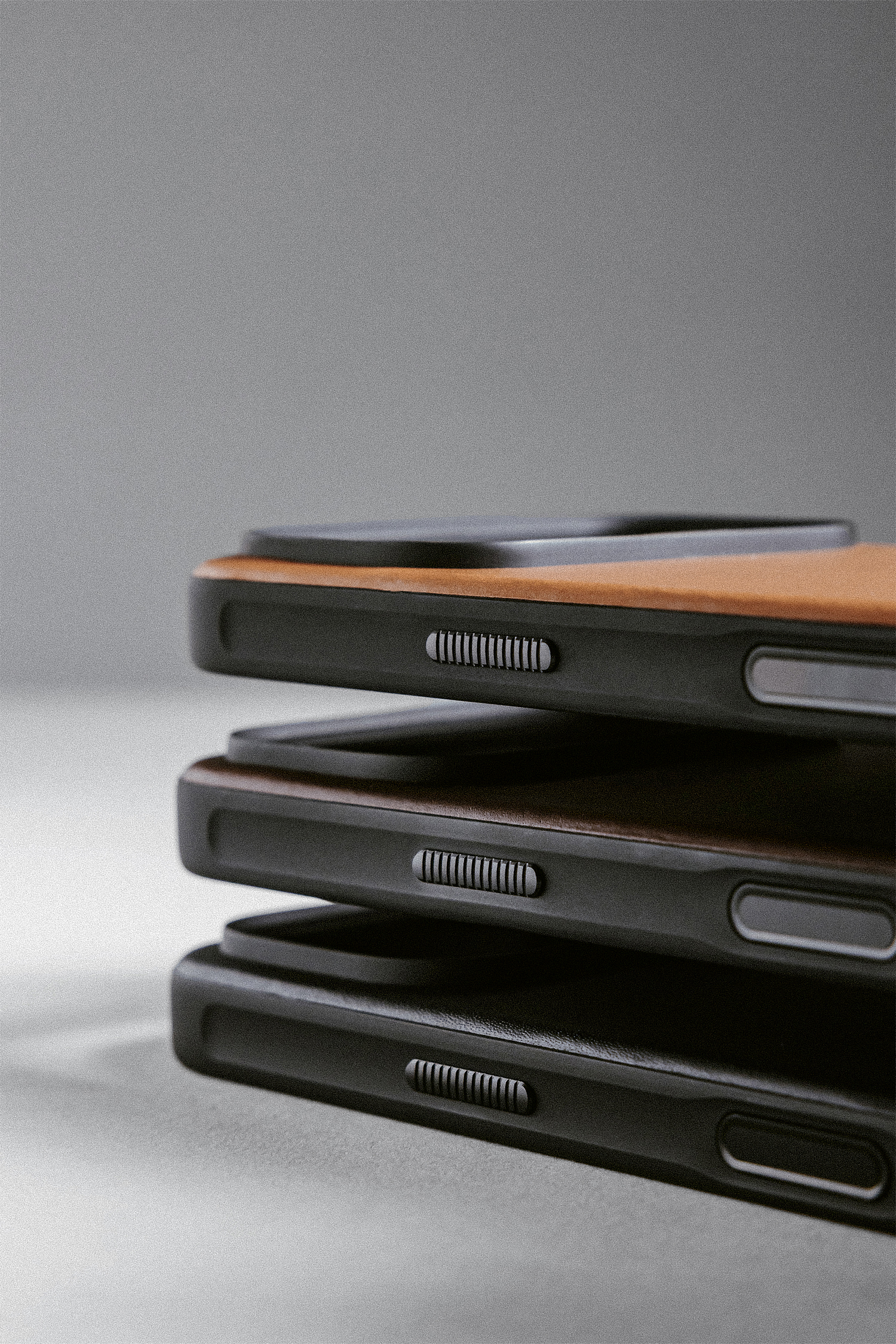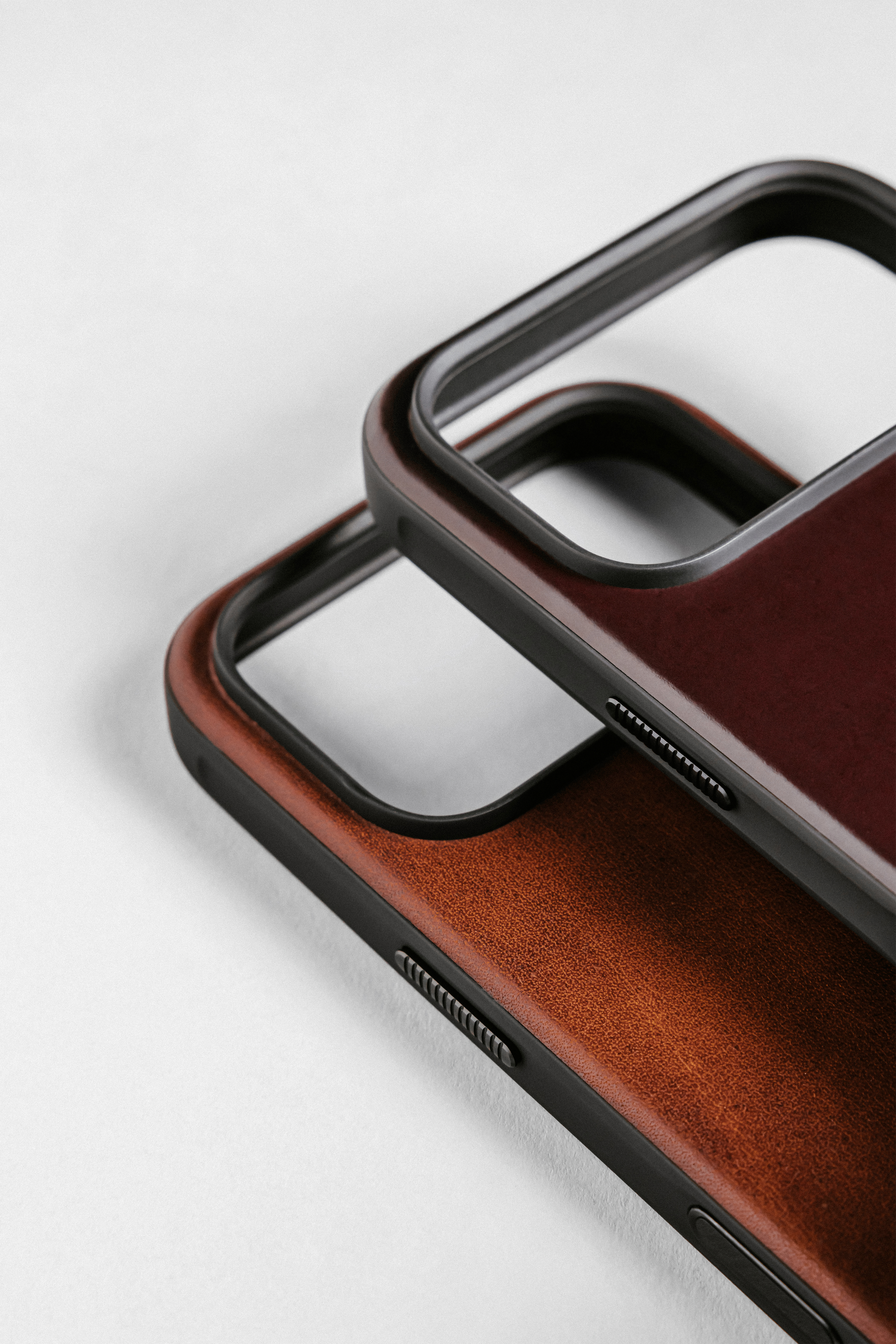 Das Modern Leather Case und das Modern Leather Folio verbinden robusten Schutz mit hochwertiger Lederverarbeitung – erhältlich sowohl in klassischem Horween-Leder als auch in Nomads eigenem glatten Echtleder. Während das Modern Leather Case durch seine schlanke, stoßdämpfende Konstruktion überzeugt und dank starker Neodym-Magnete sicheren Halt sowie volle MagSafe-Kompatibilität bietet, ergänzt das Modern Leather Folio die Kollektion um praktische Funktionalität: Neben umfassendem Schutz verfügt es über ein integriertes Kartenfach für drei Karten und Bargeld sowie einen abnehmbaren Magnetverschluss für flexible Nutzung. Beide Modelle entwickeln mit der Zeit eine charaktervolle Patina und verbinden so elegantes Design mit Alltagstauglichkeit.