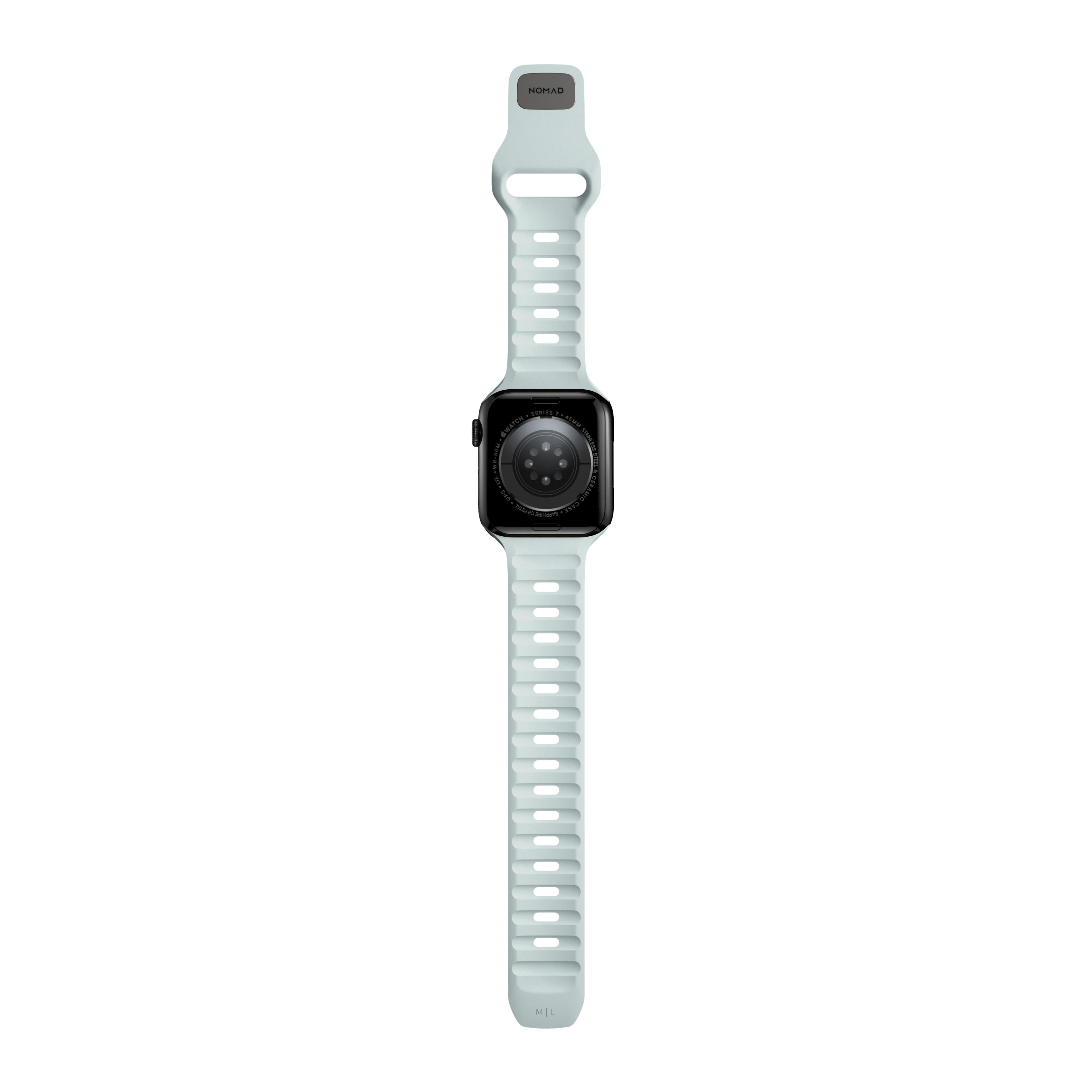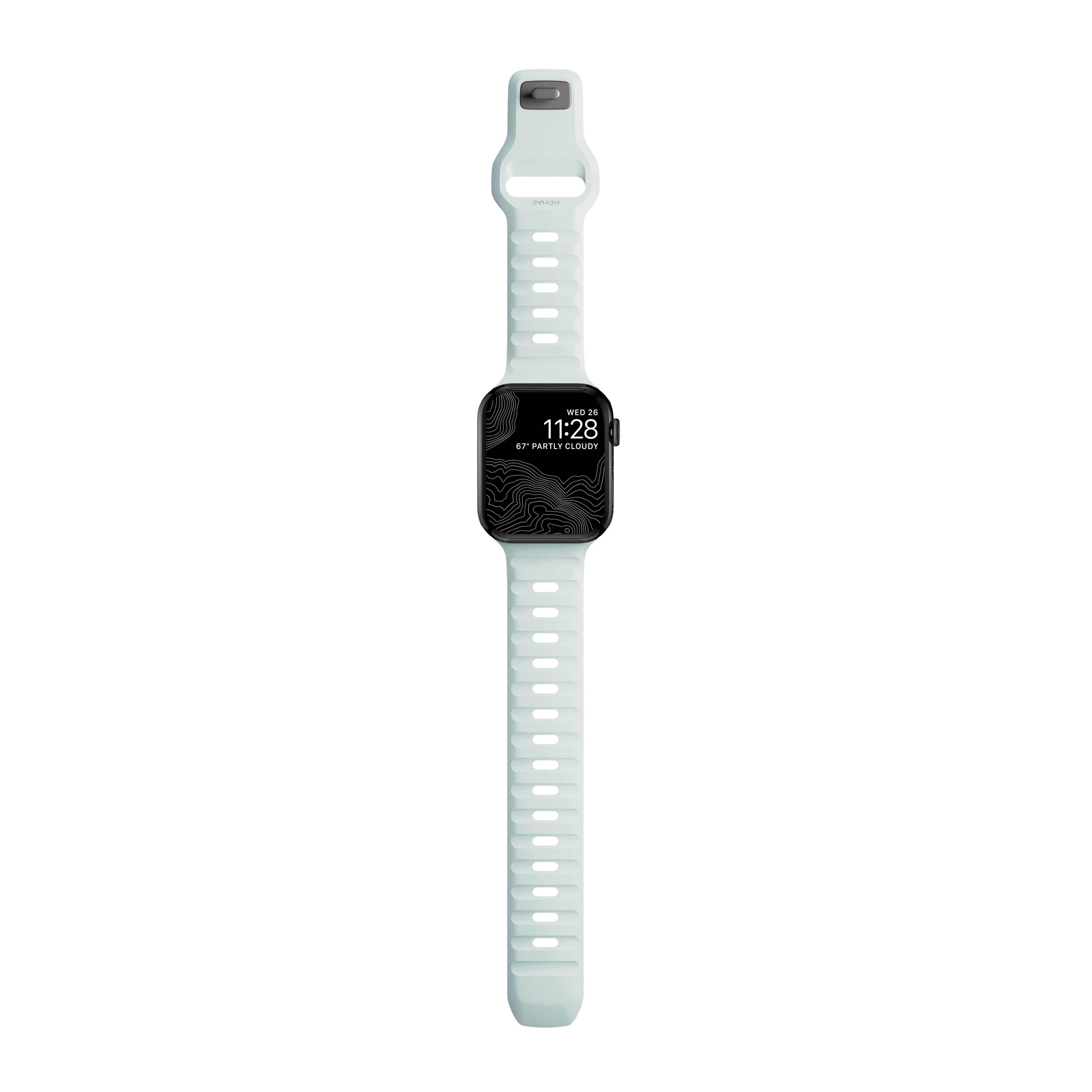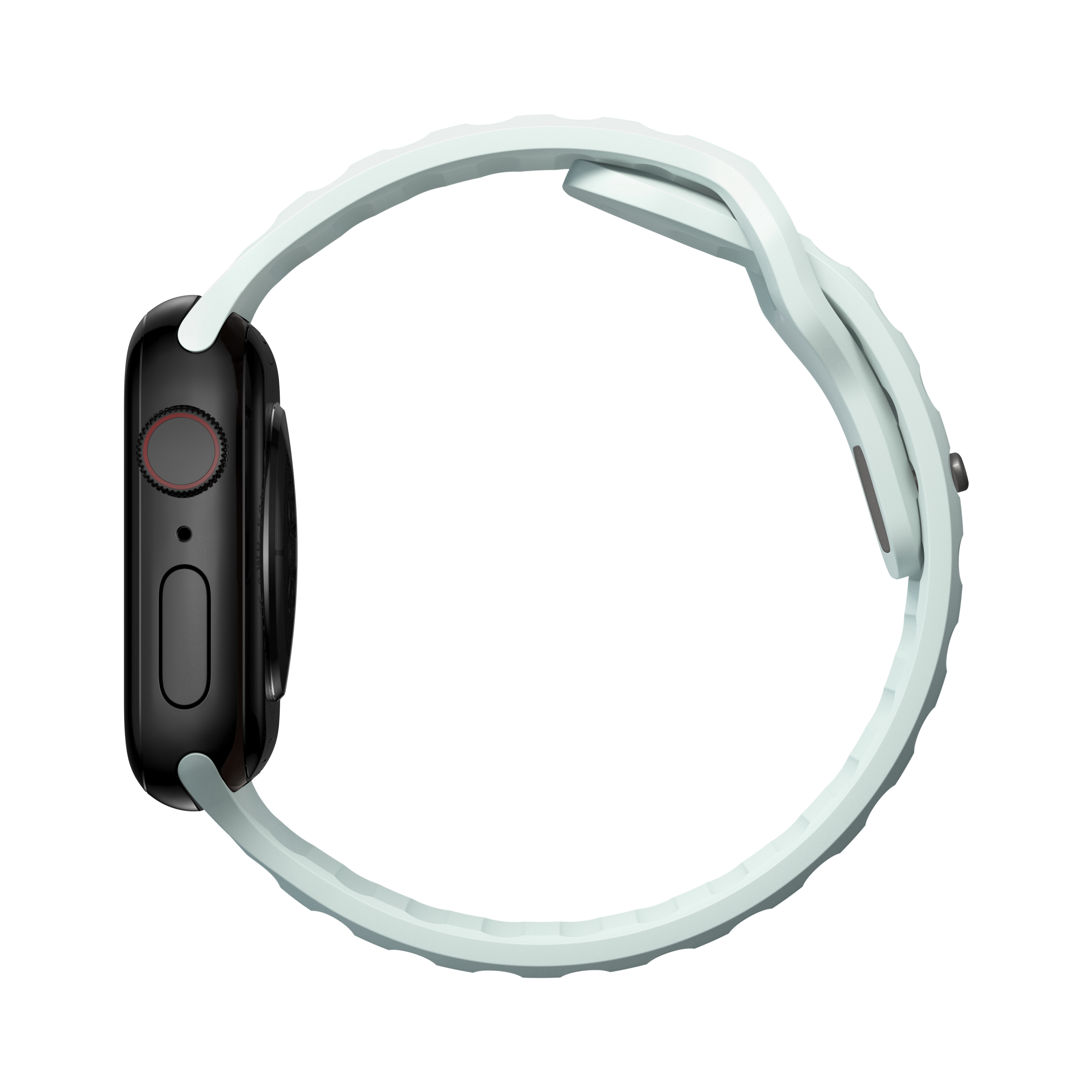 Das limitierte Sport Band Icy Blue Glow von Nomad ist nicht nur sportlich leicht, sondern erstrahlt auch im Dunkeln in leuchtender Farbe.