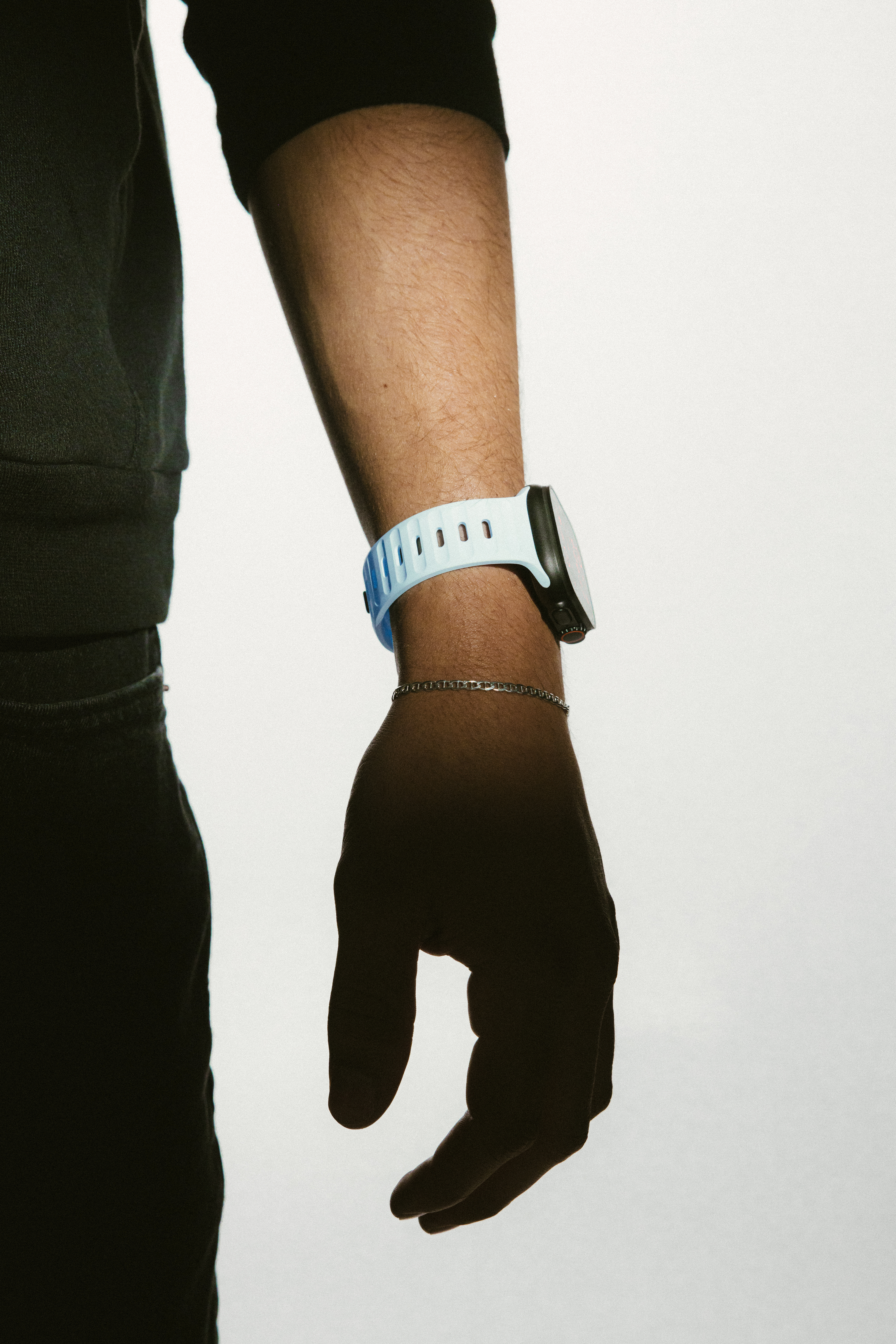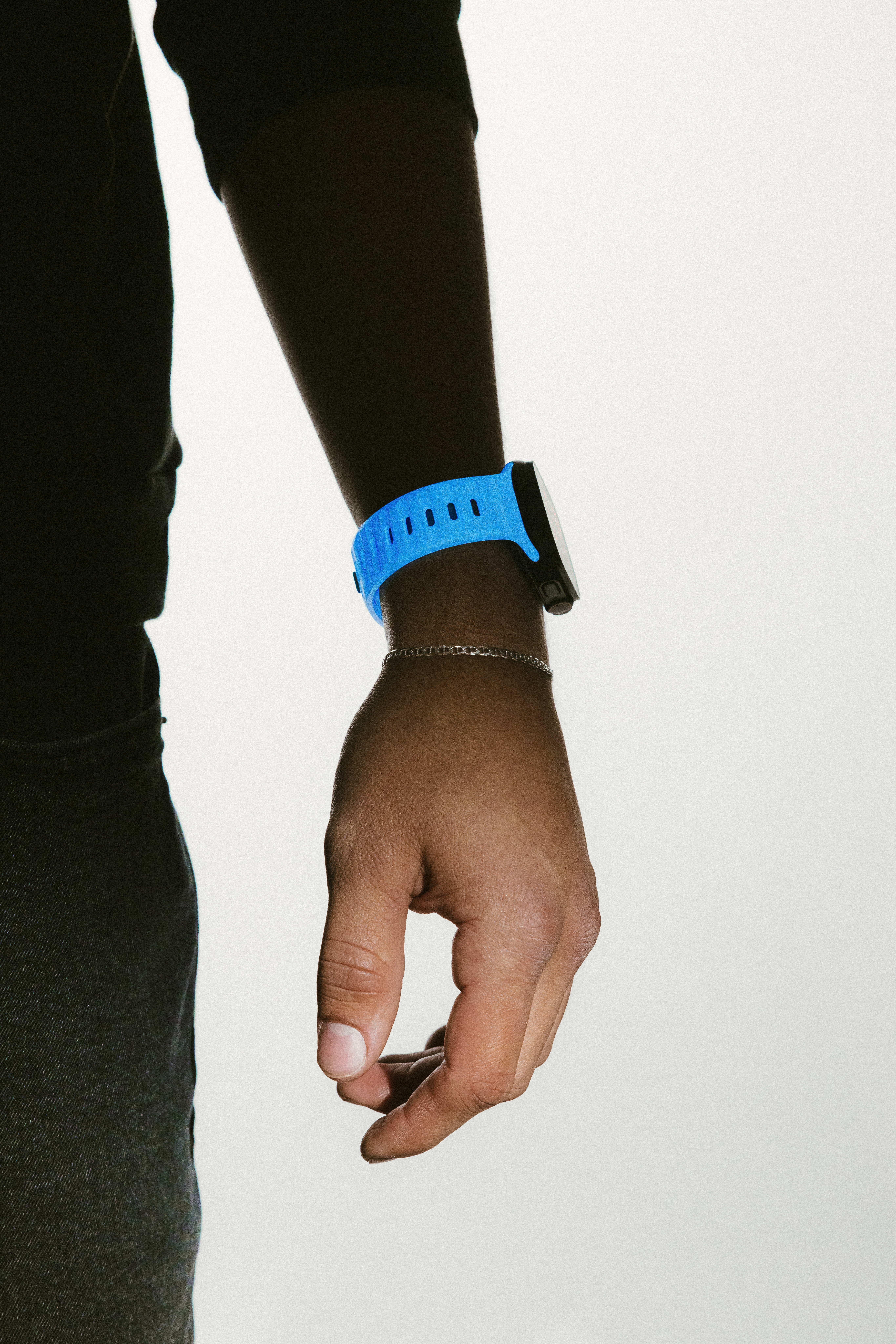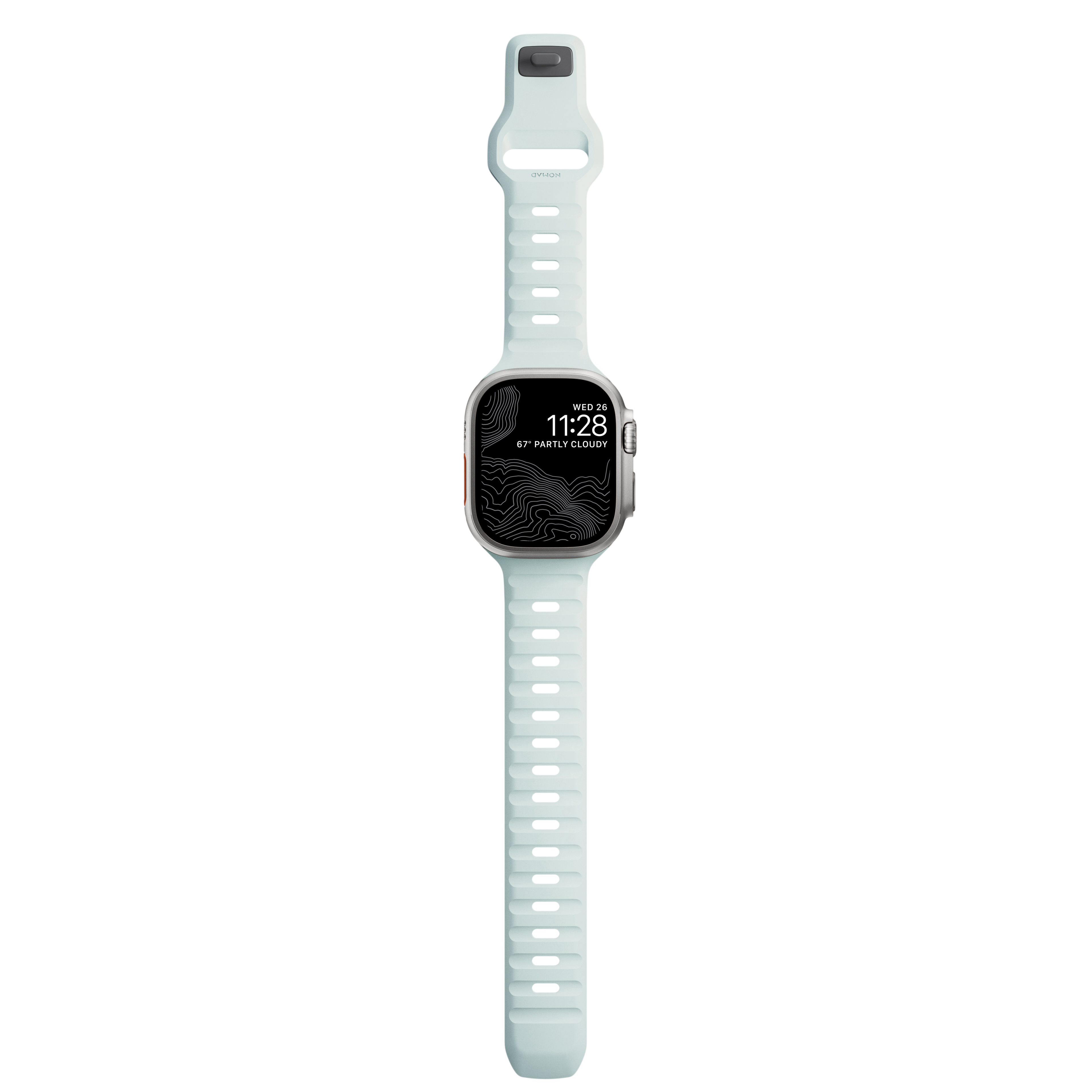 Das limitierte Sport Band Icy Blue Glow von Nomad ist nicht nur sportlich leicht, sondern erstrahlt auch im Dunkeln in leuchtender Farbe.