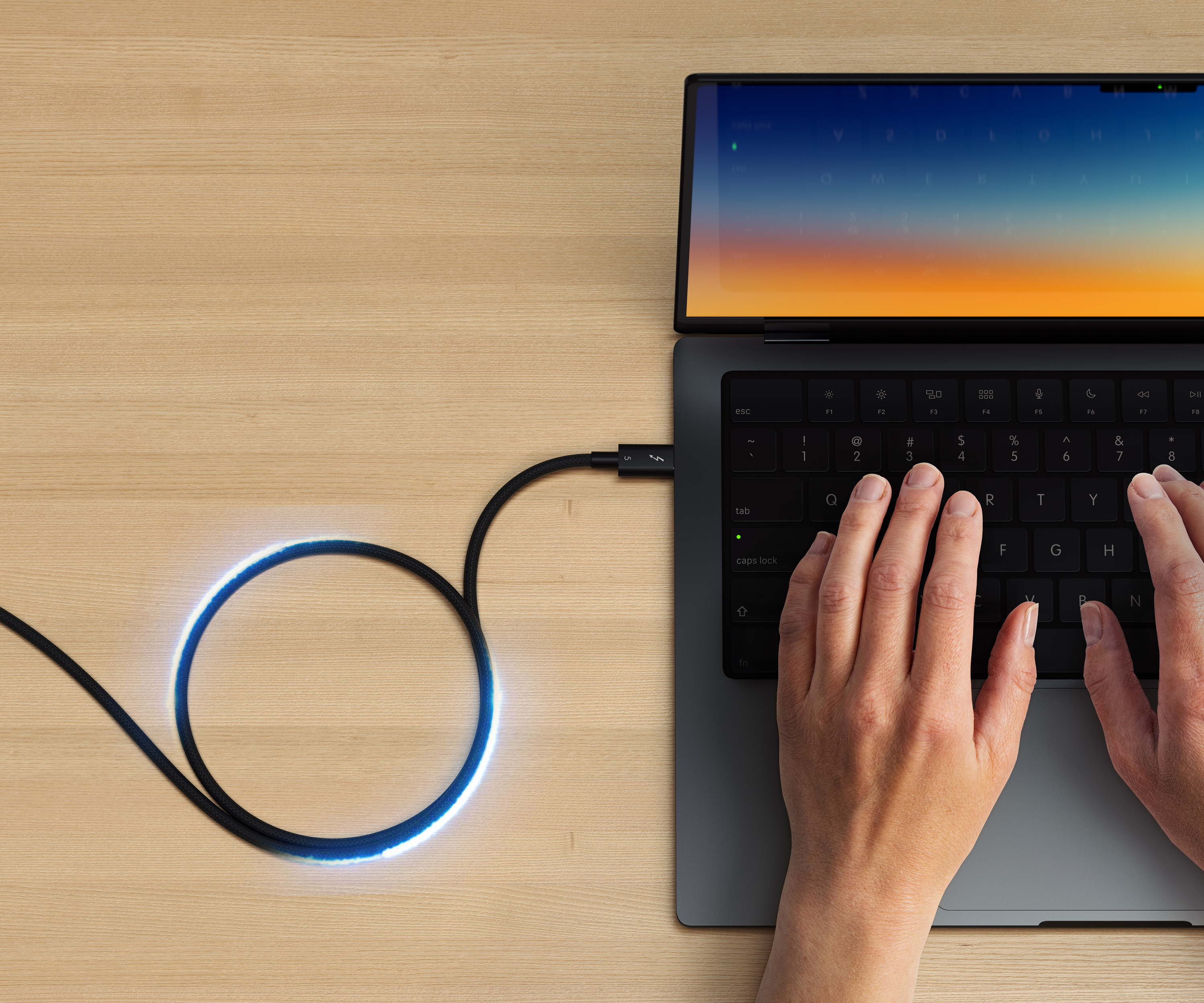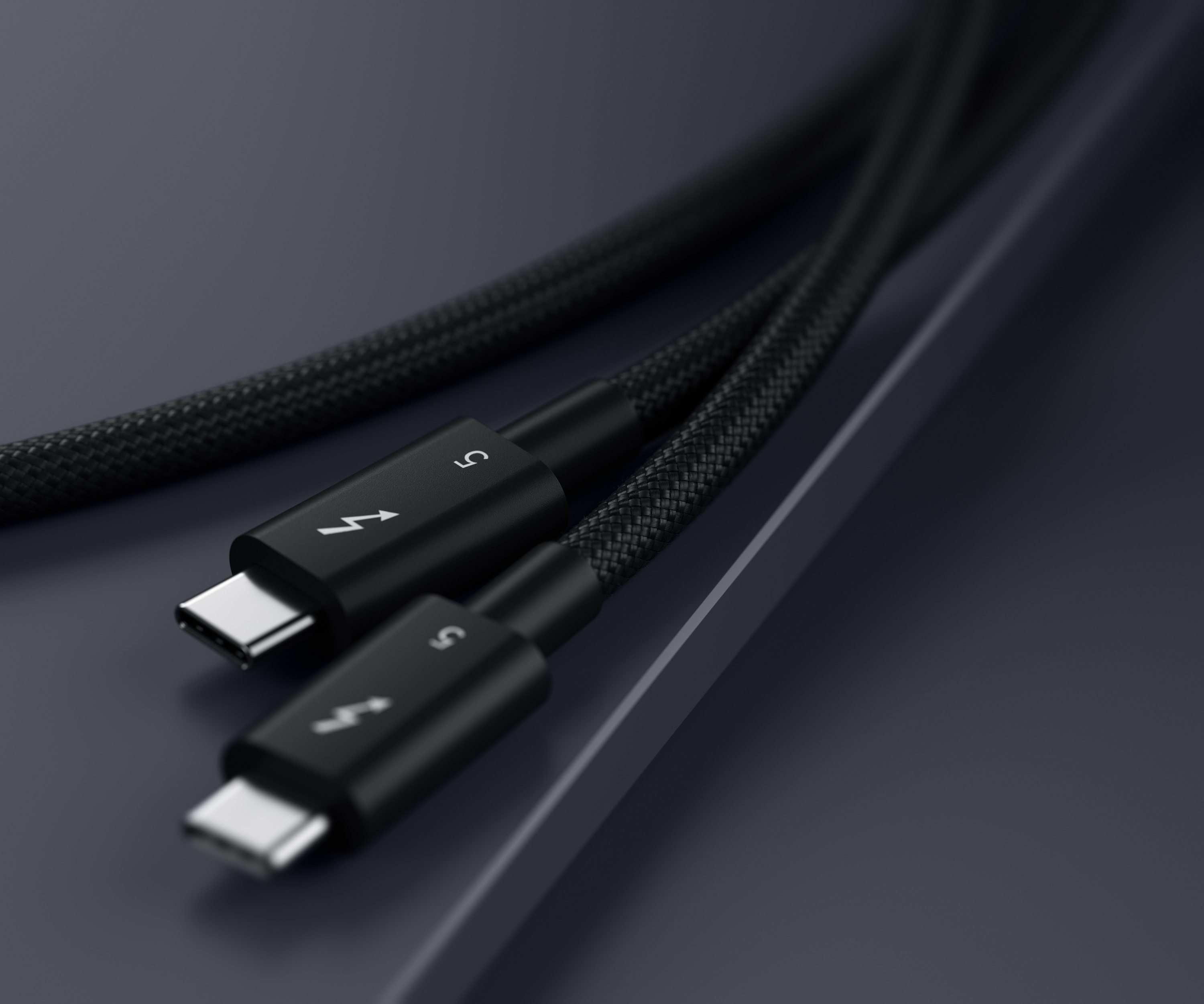 • Thunderbolt-5-zertifiziertes Verbindungskabel zur Übertragung von Daten, Videosignalen und Strom