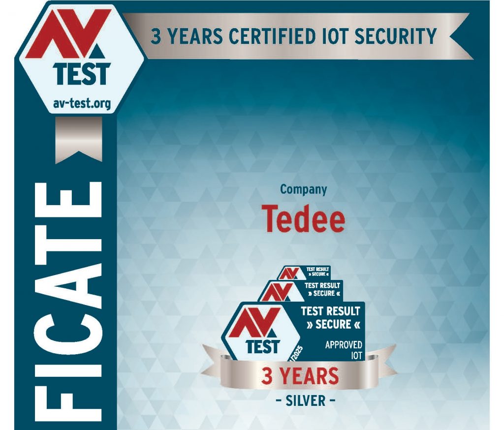 Im April 2025 wurde das tedee-System vom unabhängigen IT-Sicherheitsinstitut AV-TEST mit der neuen Auszeichnung in Silber prämiert. tedee nahm drei Jahre in Folge am umfassenden Prüfverfahren für IoT-Produkte teil und überzeugte dabei durch stabile Systemzuverlässigkeit, starke Verschlüsselung und praxisnah umgesetzte Sicherheitsfunktionen.